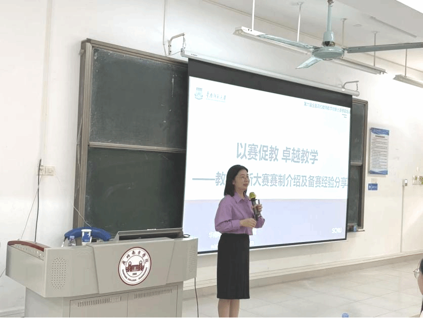为助力我校教师备战第六届教学创新大赛,切实做到“以赛促教”,提升教学质量,9月29日下午,教务处在教学楼1号201室举办“育人强师”教师发展系列培训第三讲——“以赛促教 卓越教学:教学创新大赛赛制介绍及备赛经验分享”。