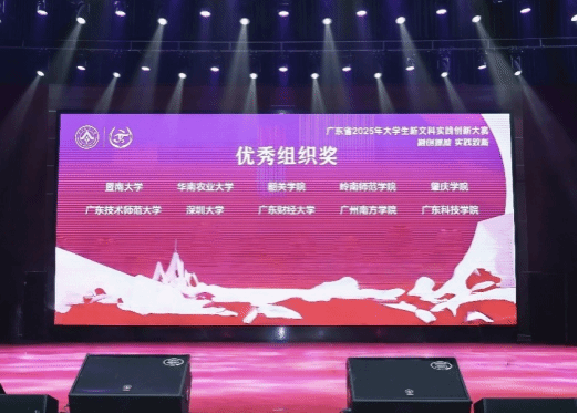 近日,2025年大学生新文科实践创新大赛广东省现场决赛在华南农业大学落幕。经过激烈角逐,我校参赛团队凭借出色表现斩获金奖3项、银奖1项、铜奖4项。同时,学校荣获大赛“优秀组织奖”,成为本届大赛为数不多获此殊荣的民办高校,彰显了我校在深化新文科建设、创新应用型人才培养模式的显著成效。